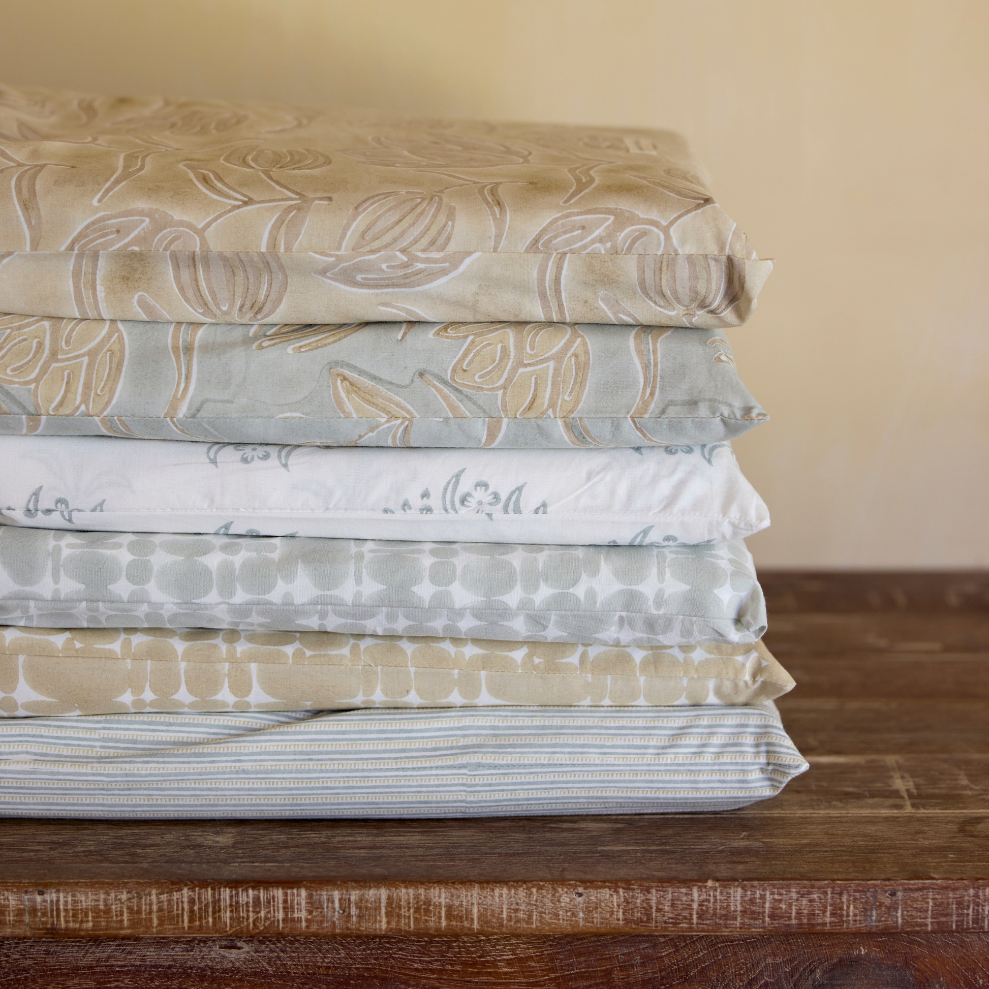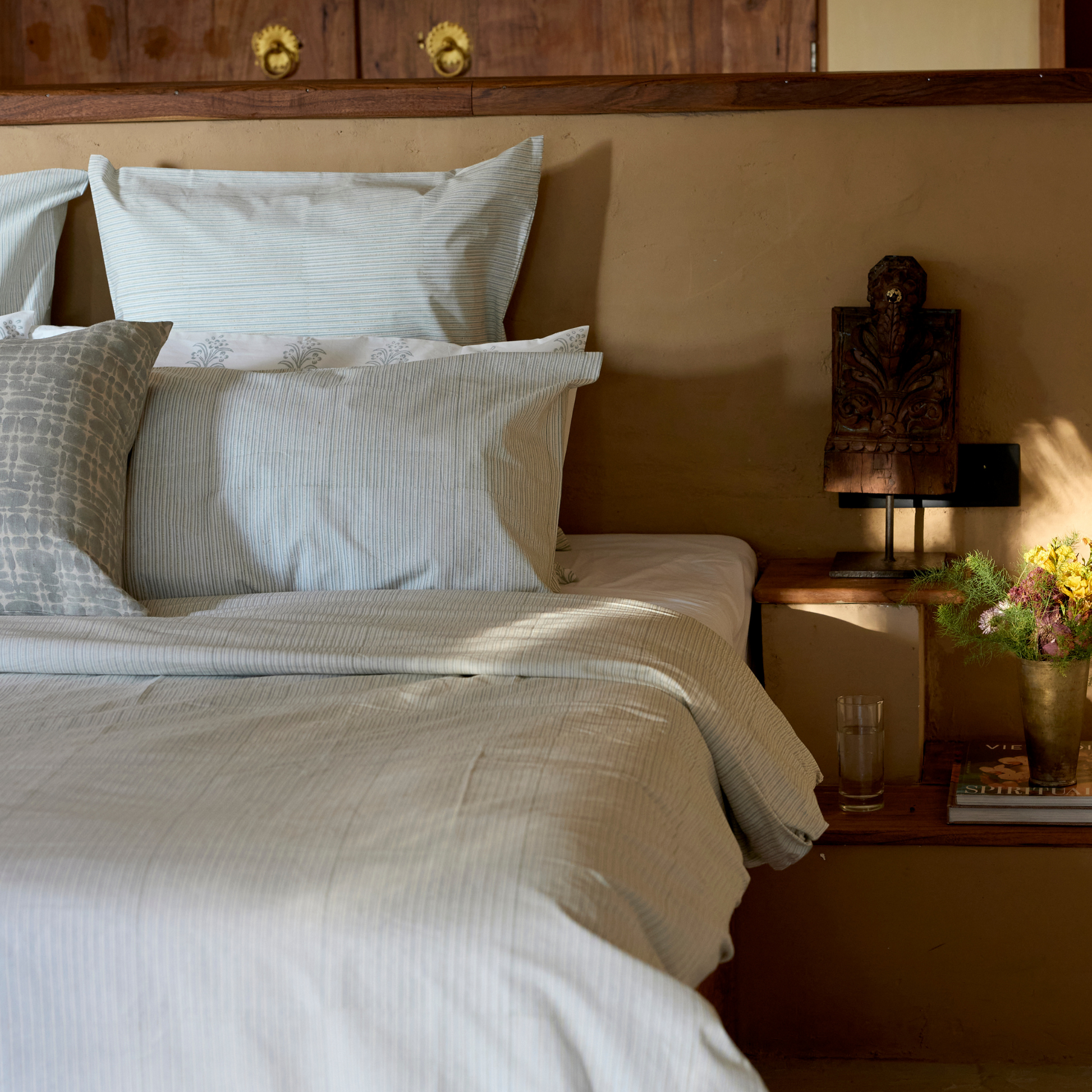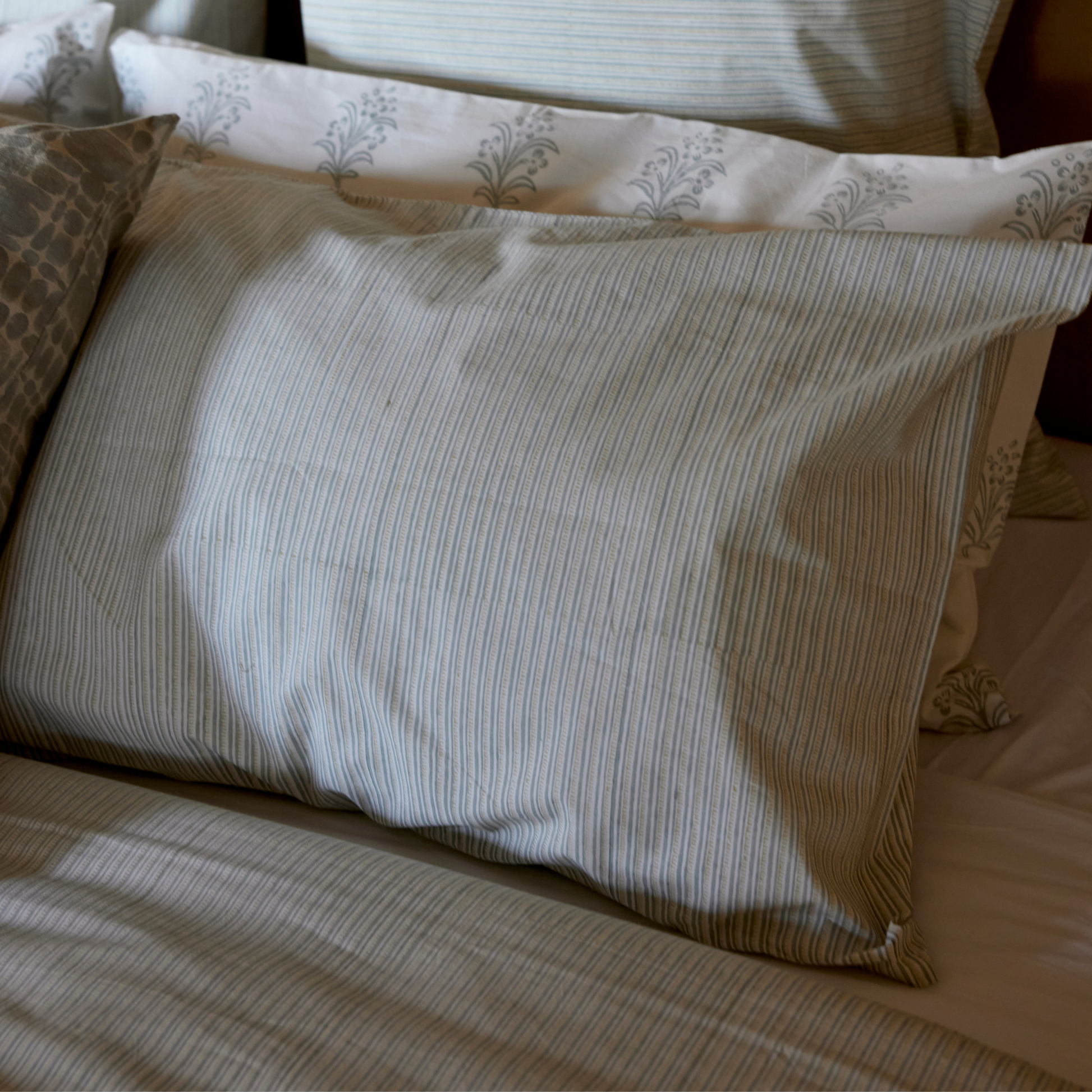 Notre rayure échelle Clémence est imprimée à la main au bloc de bois sur notre percale de coton le plus doux. Vendue à l'unité. Oreiller non inclus.