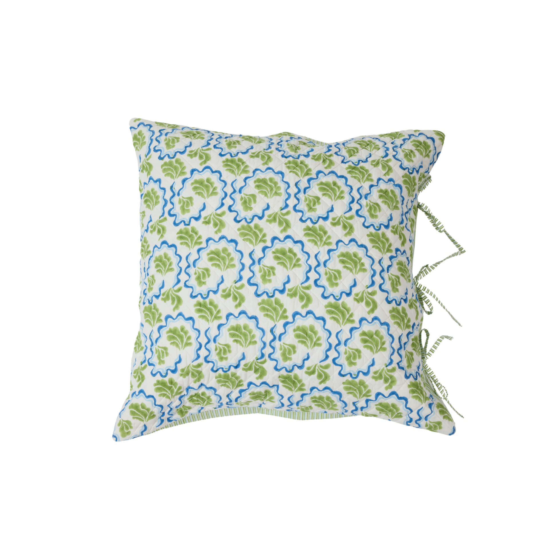 Cette courtepointe polyvalente est imprimée à la main au bloc de bois selon la technique traditionnelle indienne de broderie « Kantha ». Elle est imprimée sur une face et imprimée au bloc sur l'autre face, avec une bordure simple et des coutures contrastées.