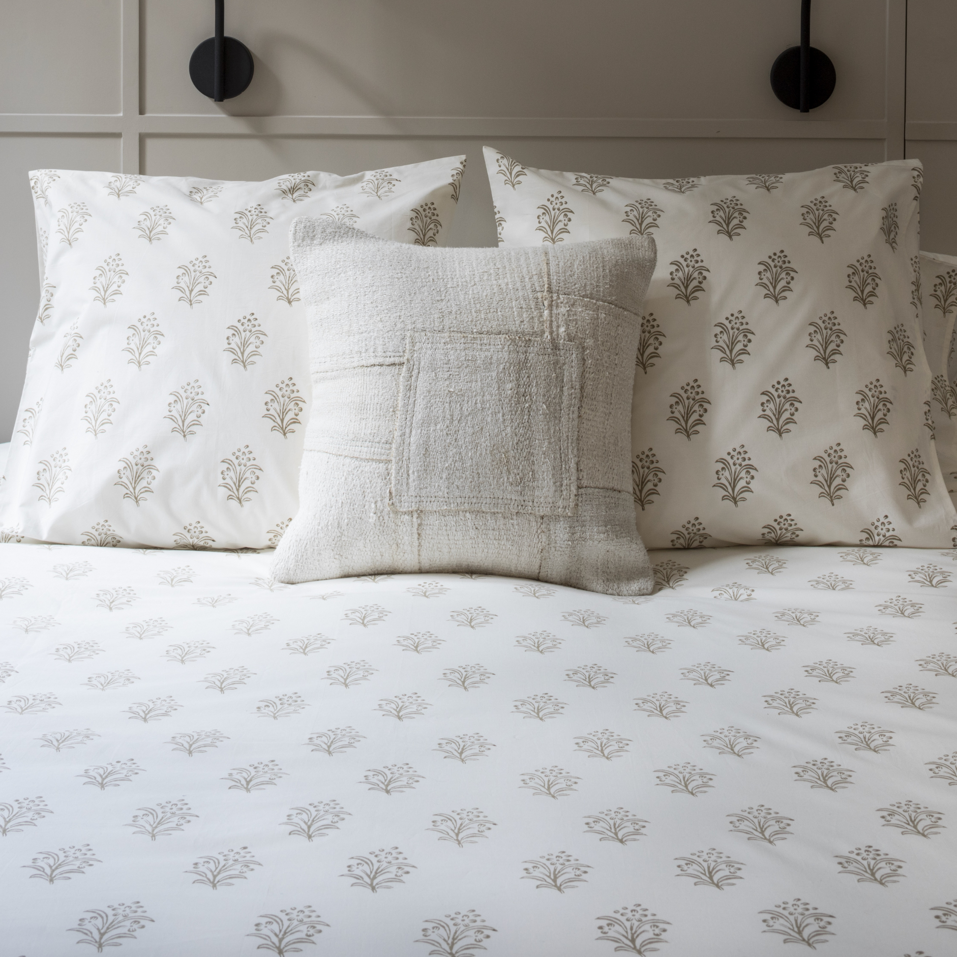 Notre housse de couette florale Eloise et nos taies d'oreiller assorties sont imprimées en bloc sur notre coton de poids de literie le plus doux.