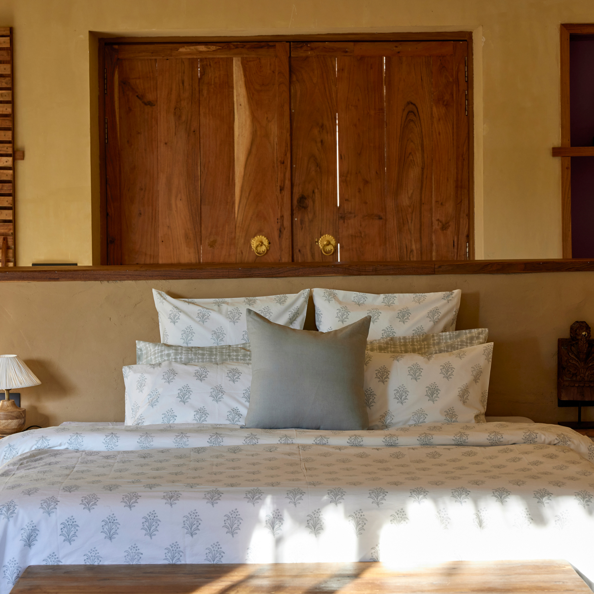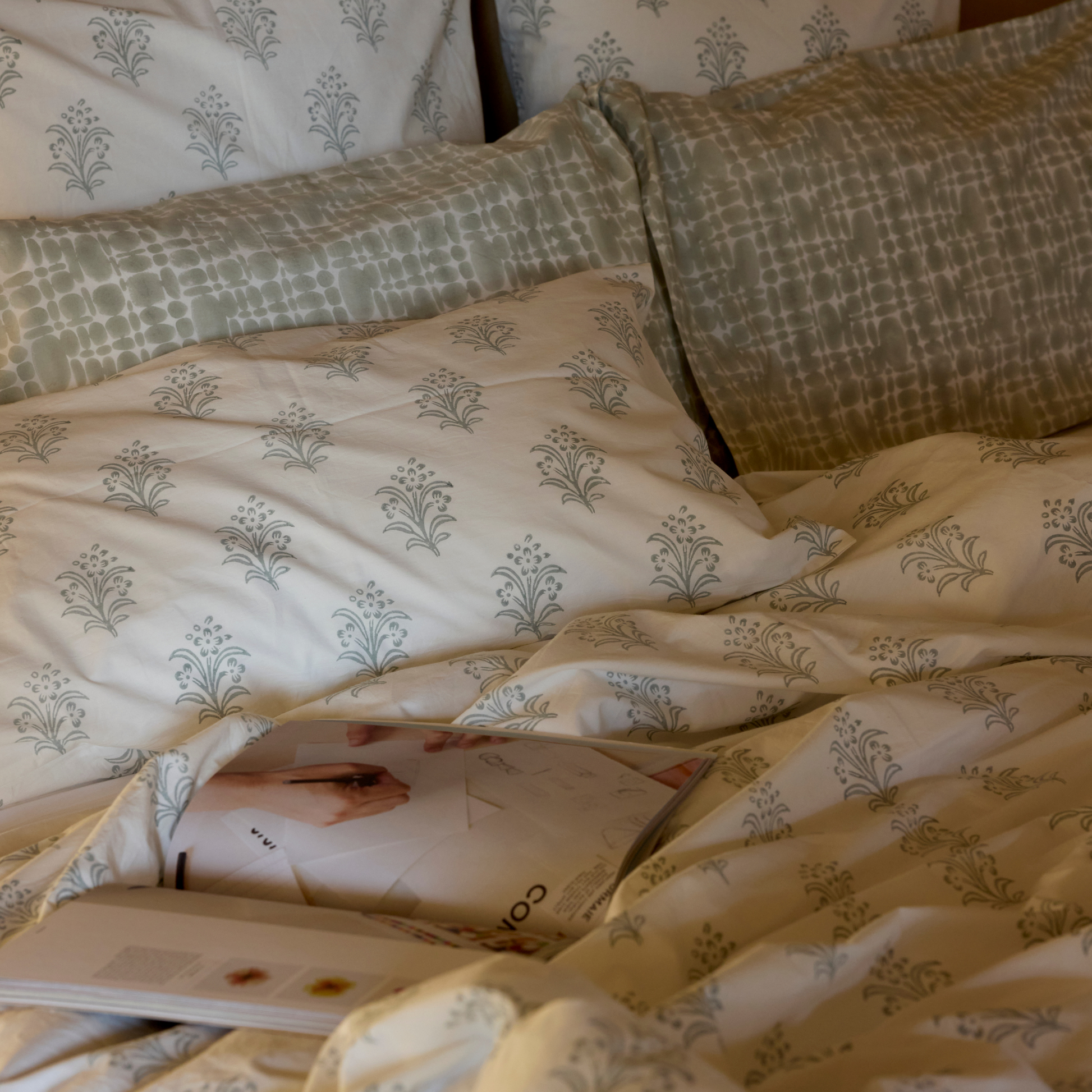 Notre housse de couette florale Eloise est imprimée en bloc sur notre coton le plus doux.