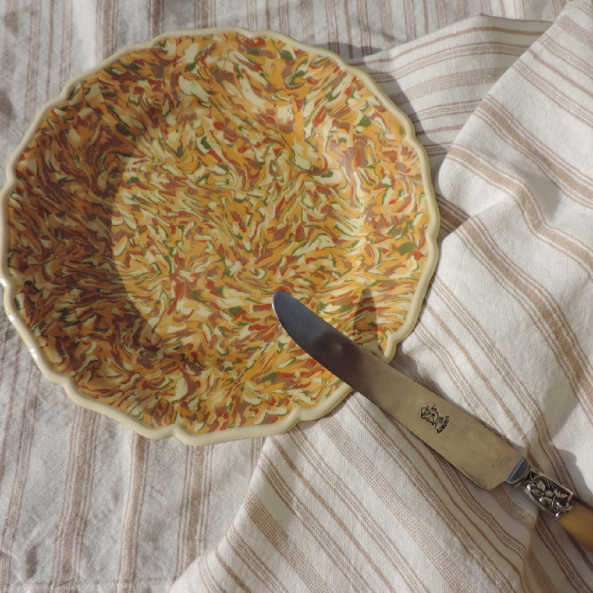 L'un des nôtre « coup de cœur », cette belle assiette unique en son genre créée à l'aide d'une technique rare appelée argiles mélangées peut être un magnifique fourre-tout ou un bel accent sur une table ou un mur.