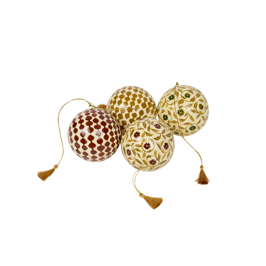 Notre imprimé Marguerite est peint à la main par un artisan local de Jaipur sur une boule en papier mâché. Ce sont de superbes décorations de Noël.