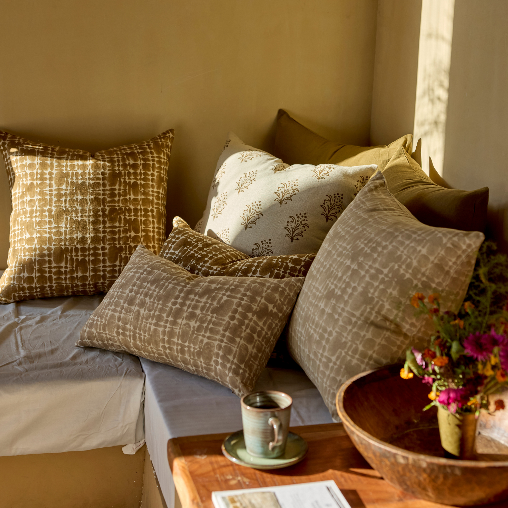 Le motif Pierre s'inspire d'un textile vintage français des années 40 que nous avons acheté et est parfait pour ceux qui apprécient l'esthétique classique avec une touche moderne. Ce motif polyvalent se marie sans effort avec une variété de styles de décoration. Imprimé sur 100 % lin. Coussin non inclus.