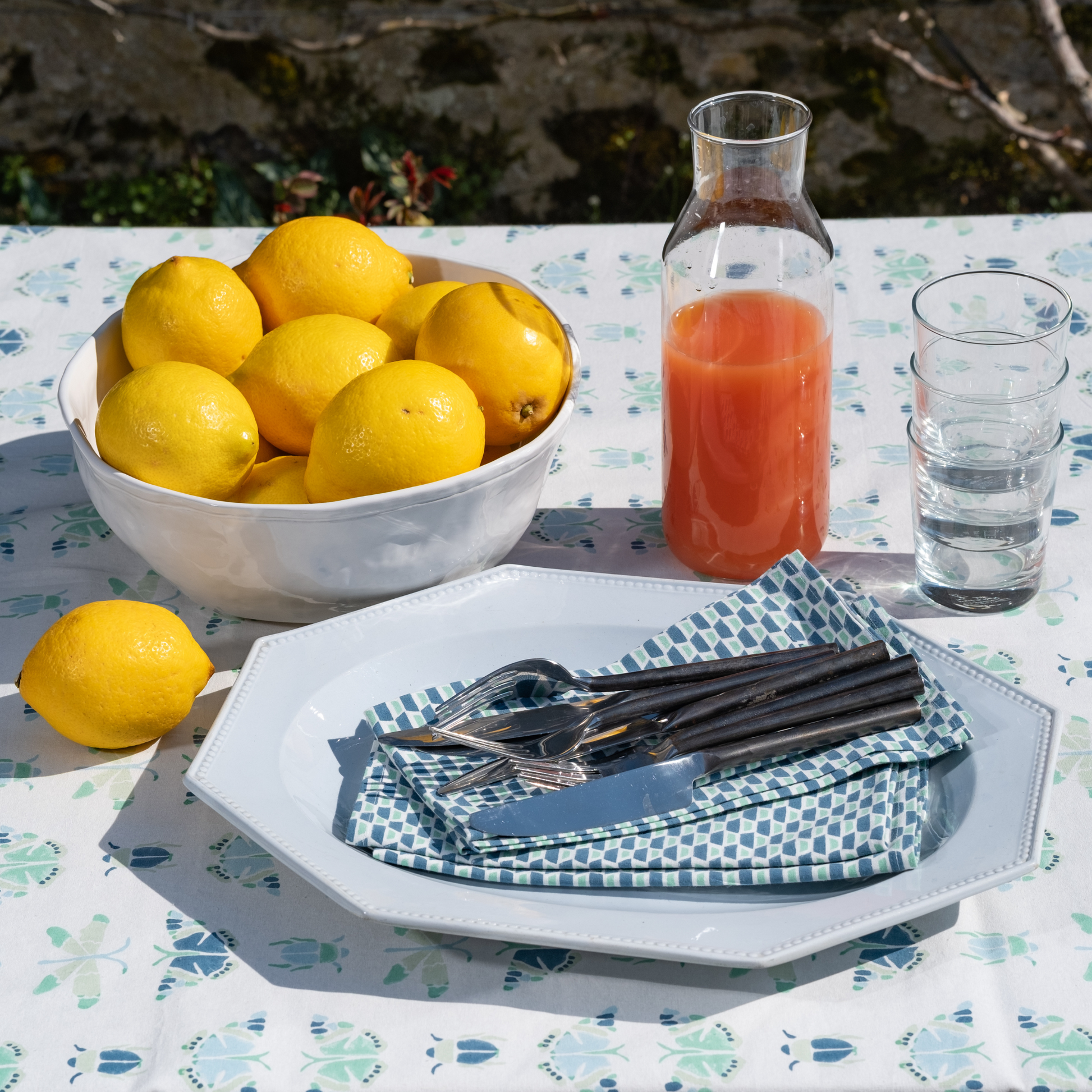Notre collection Printemps/Été s'inspire des teintes vintage de Palm Springs et du charme décontracté des rassemblements au bord de la piscine. L'imprimé Lola est parfait pour être associé à nos nappes ou pour faire sensation seul.