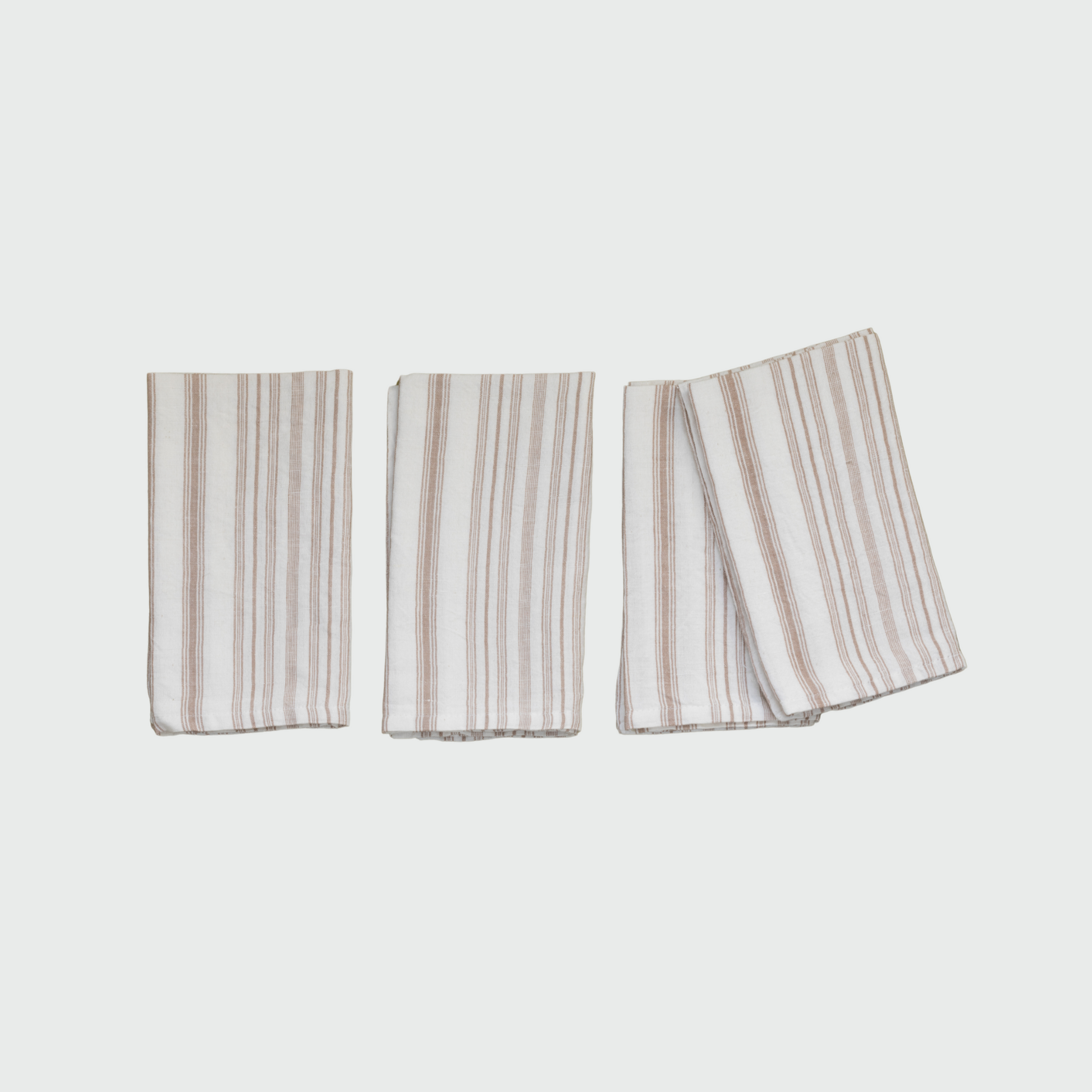 Nos serviettes à rayures classiques sont faciles à mélanger et à assortir avec nos autres serviettes et sets de table.