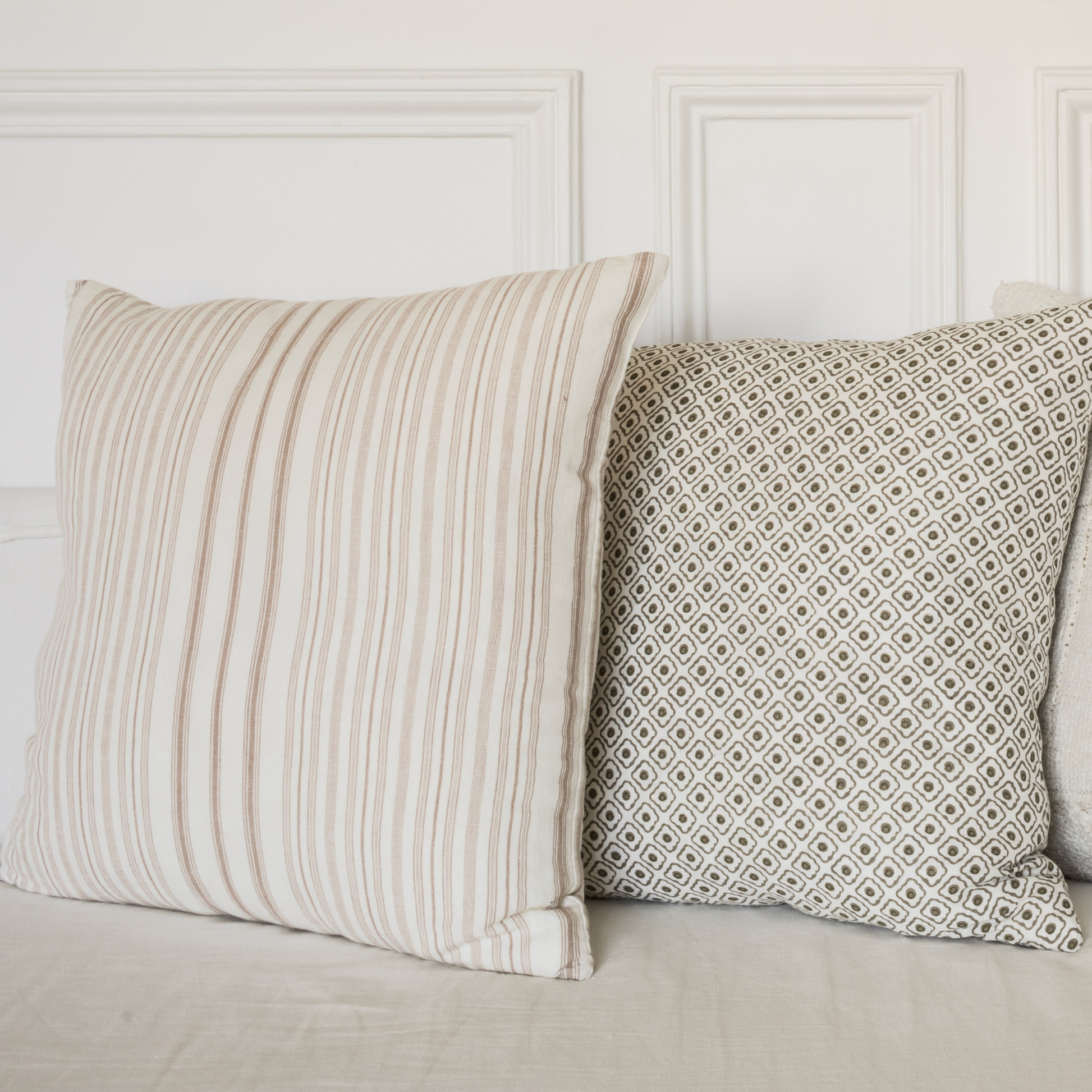 Notre coussin à rayures est facile à mélanger et à assortir avec notre collection à imprimés en bloc.